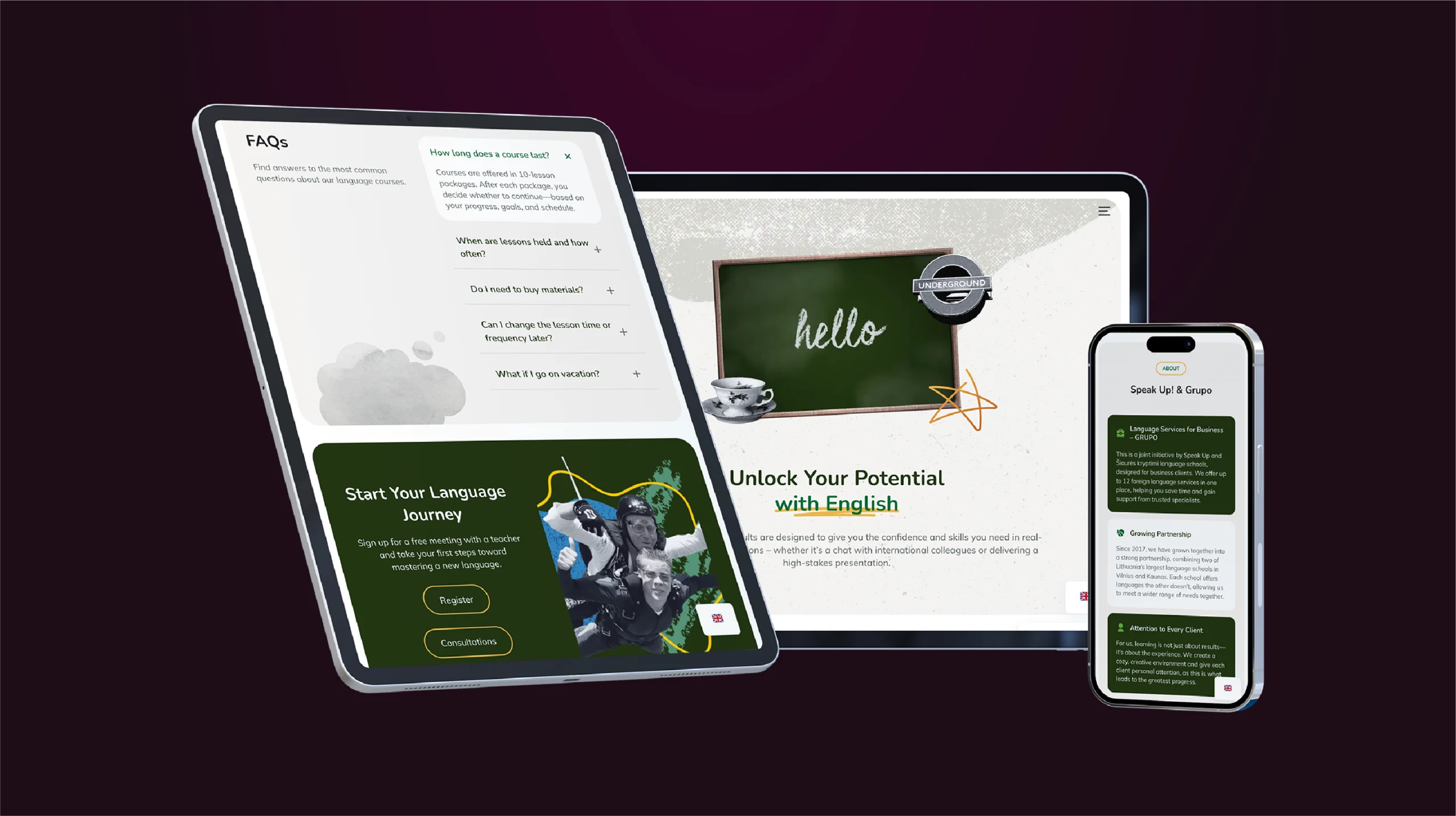 For language courses – the company’s core service – we created a dedicated inquiry form on a separate page. For corporate training, exam preparation (including IELTS), and consultations, we added individual forms at the bottom of each service page. This approach made it easier to submit inquiries and helped direct them more accurately based on user intent.