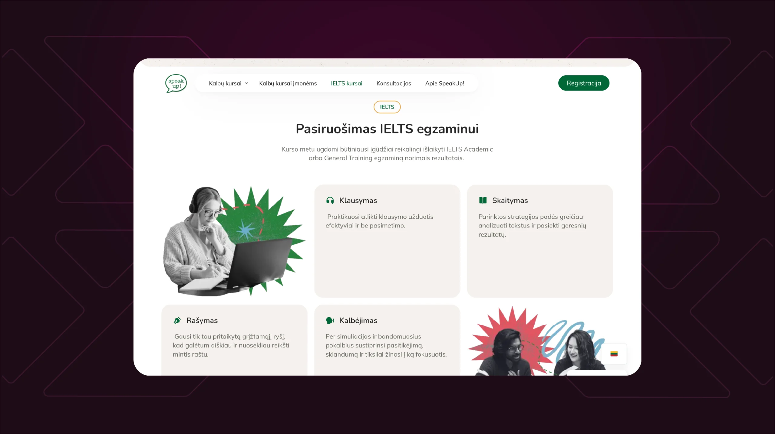 The website design was updated to align with the company’s visual identity on social media, preserving the illustration style and incorporating subtle animations for a more dynamic experience.